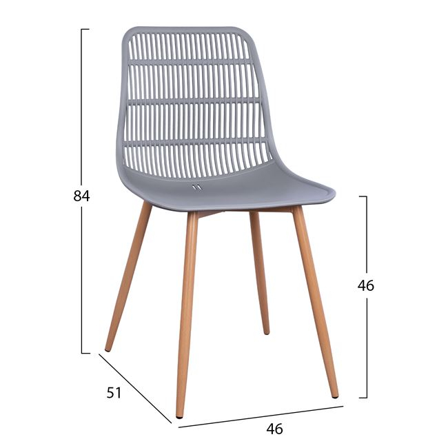 Добавете стил и комфорт във вашия дом с този модерен и елегантен стол. Създаден от висококачествен полипропилен, този модел съчетава устойчивост и лекота на поддръжка. Прекрасните линии и класическият сив цвят придават на вашето пространство съвременен и изчистен вид.