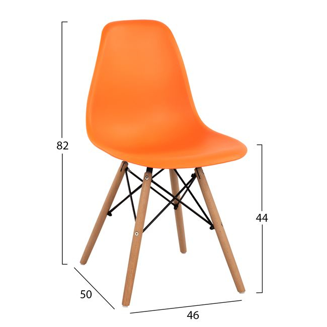 Този стол е наличен в ярък и привлекателен оранжев цвят, който придава свежо усещане на всяко помещение. Краката са закрепени чрез здрави метални елементи, които допълнително увеличават стабилността и издръжливостта на продукта.