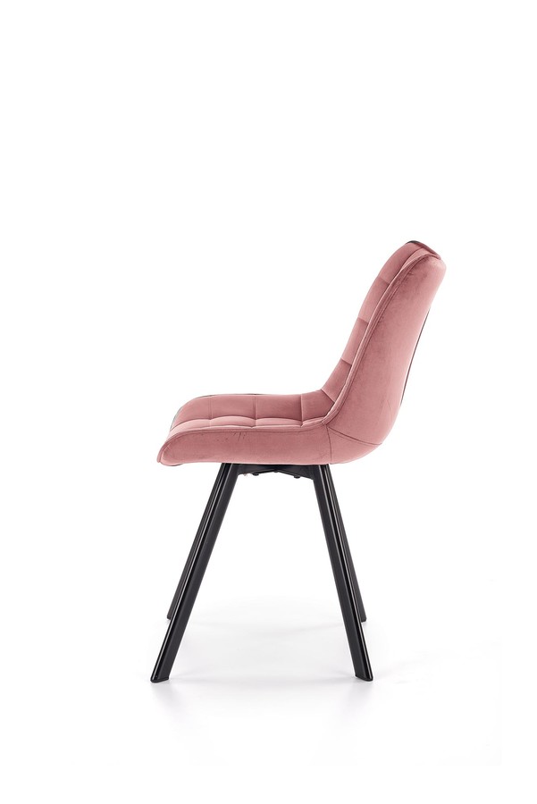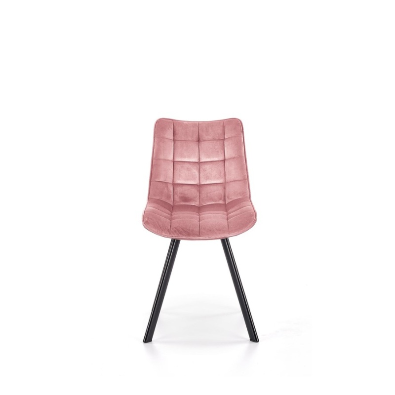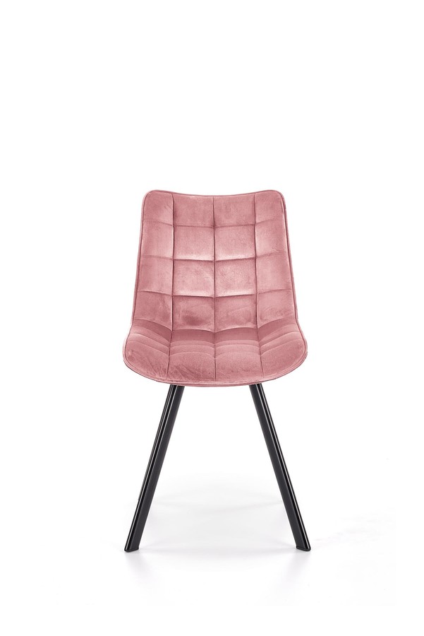 Розовият стол без подлакътници се отличава с изчистена форма. Този модел е поставен върху четири прости крака, изработени от черна прахово боядисана стомана. Представеният стол е тапициран с мека и приятна на допир материя , върху които декоративни шевове и капитониране, придаващи оригинален дизайн на мебелите. Стол ще осигури на потребителите комфорт при седене, като в същото време ще бъде елемент от оборудването, който не може да бъде подминат с безразличие.