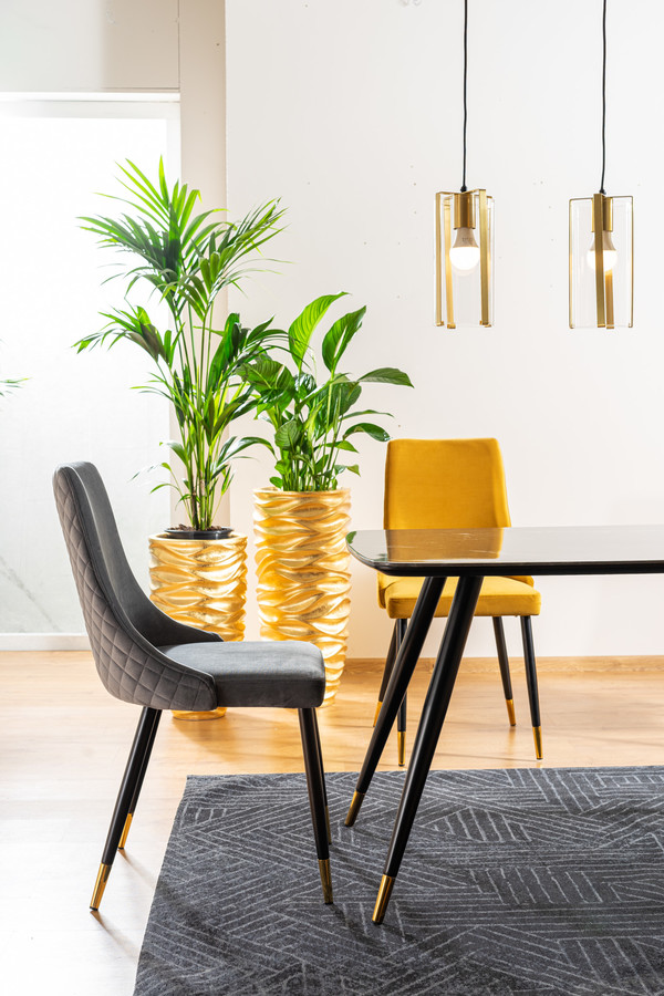 Стол – Столът от кадифе е много интересно предложение за хората, които ценят оригиналния подход към класиката и утилитарните елементи на оборудването, които могат да шокират и да причинят ефект на WOW, независимо от това каква подредба са в момента. Мебелите ще изглеждат страхотно както в класическия интериор, така и в съвременните, които се нуждаят от изразителни акценти. Струва си да се знае, че дизайнерите са положили всички усилия, за да получат лека, актуална и не -очевидна мебел. Столът се състои от доста дълбока седалка, която беше свързана от средната височина със заоблена форма. Въпреки че столът няма подлакътници, това ни кара да седим в него, сякаш седяхме в дълбок кресло. Мебелите се поддържат от метална рамка с леко разширени, прави крака.