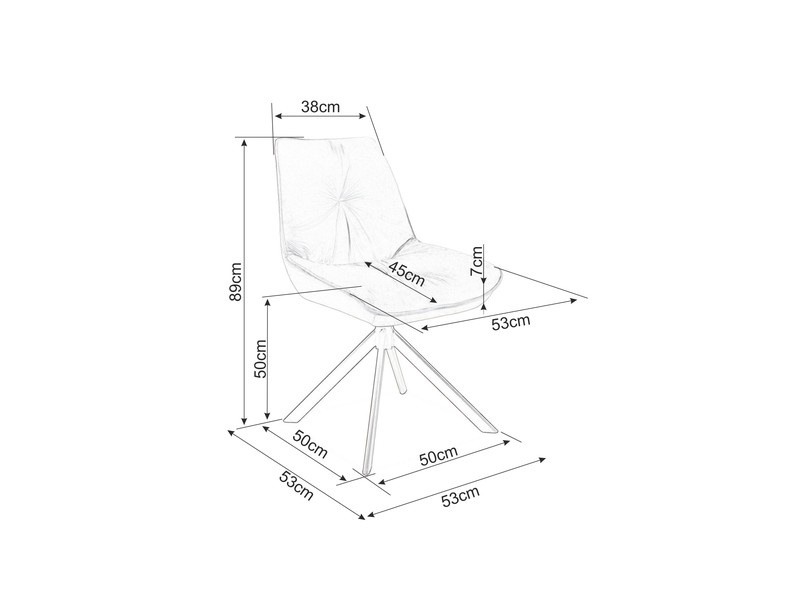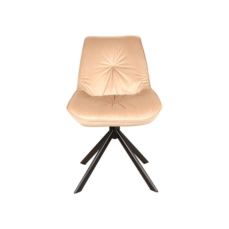 Тапициран стол – Ротационният стол е красиво, стилно парче мебели, което със сигурност ще отговаря на подреждането на хола или офиса. Освен това е чудесно в трапезарията или конферентната зала на компанията. Благодарение на универсалните цветове, той дори ще се впише в многоцветни пространства. Въртящият се стол е изключително практичен – той е оборудван с функция за търговия с седалки до 180 градуса с автоматична възвръщаемост. Седалката на представения модел е подрязана с кадифена тъкан в нюанс на бежово, което се отличава с лек блясък. Цялото е разположено върху черна метална рамка във формата на кръст.