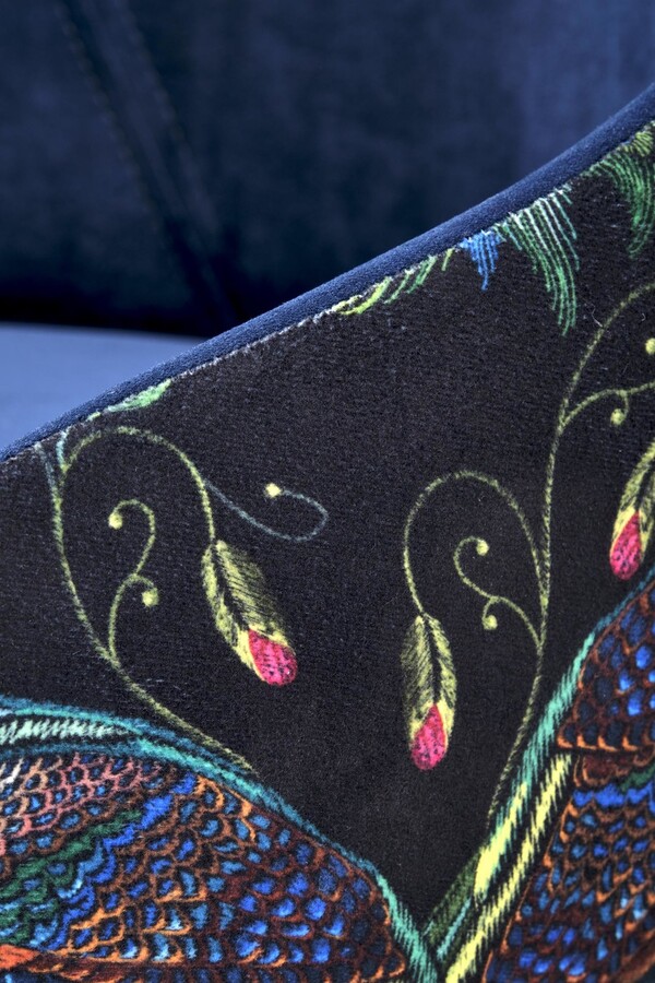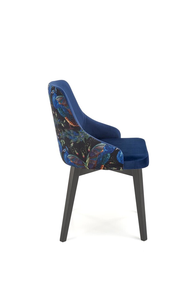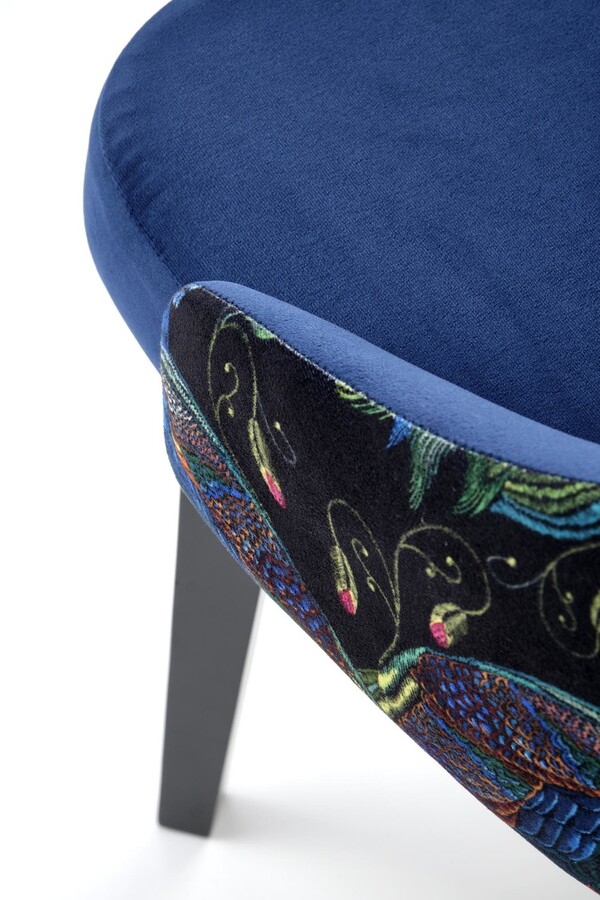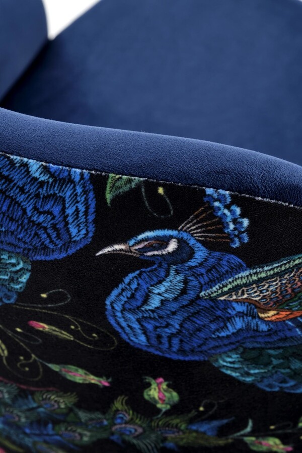 Тапицираният стол е максимум елегантност и уникална форма, събрани в един стол. Това е модел, който ще се хареса на всички любители на неочевидните комбинации и вечните композиции както за класически, така и за модерен интериор. Описаното Моделът се състои от седалка тип кофа, която е тапицирана с мека, кадифена материя.На облегалката имаме интересна бродерия с мотив на птици и растения, а отпред – униформен, тъмносин плат.Цялото е поставен на четири масивни, разширени крака от букова дървесина.Стои перфектно и се вписва идеално във всякакъв вид аранжировка.Описаният модел е особено препоръчителен за интериори в бляскав стил и за авангардни интериори в модерен стил .Столът се предлага в различни цветове.