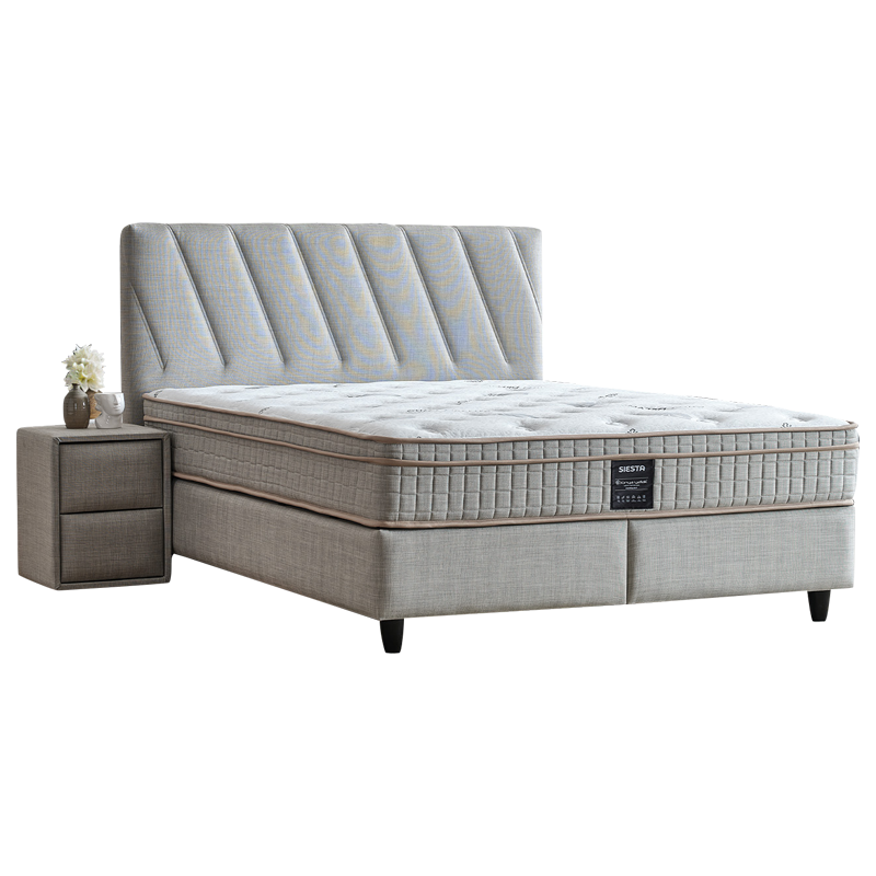 Превърнете спалнята си в истинско място за почивка със стилната и функционална тапицирана спалня с матрак , която съчетава елегантна визия, комфорт и удобство в едно. Моделът впечатлява с мека текстилна дамаска в топъл цвят и изчистена табла с нежни шевове, която придава усещане за лекота и уют. Спалня е оборудвана с двулицев матрак с вградена подматрачна рамка, който осигурява стабилна и комфортна опора благодарение на бонел пружините, еластичната пяна и пухената вложка. Матракът е с умерено твърда структура и добри ортопедични свойства, подходящ за всекидневна употреба. Под леглото се крие практична ракла за съхранение ; идеално решение за подреждане на спално бельо и други вещи. Пълна информация за размерите и характеристиките на модела ще намерите в таблицата в таб/поле ‘Техническа информация’.