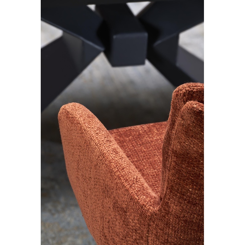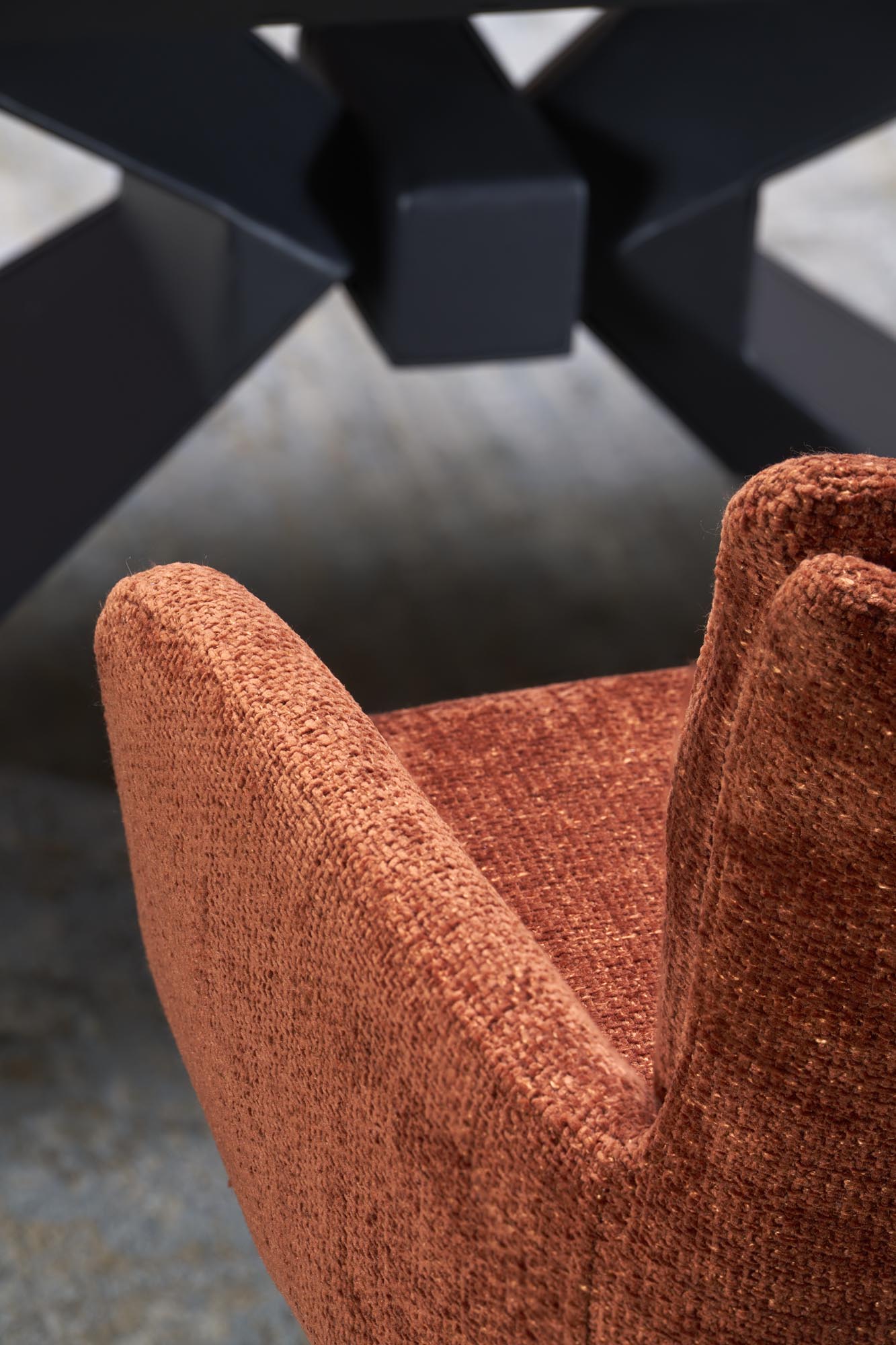 Разположени около масата с топла теракотена тапицерия, която осигурява уют и интимност.