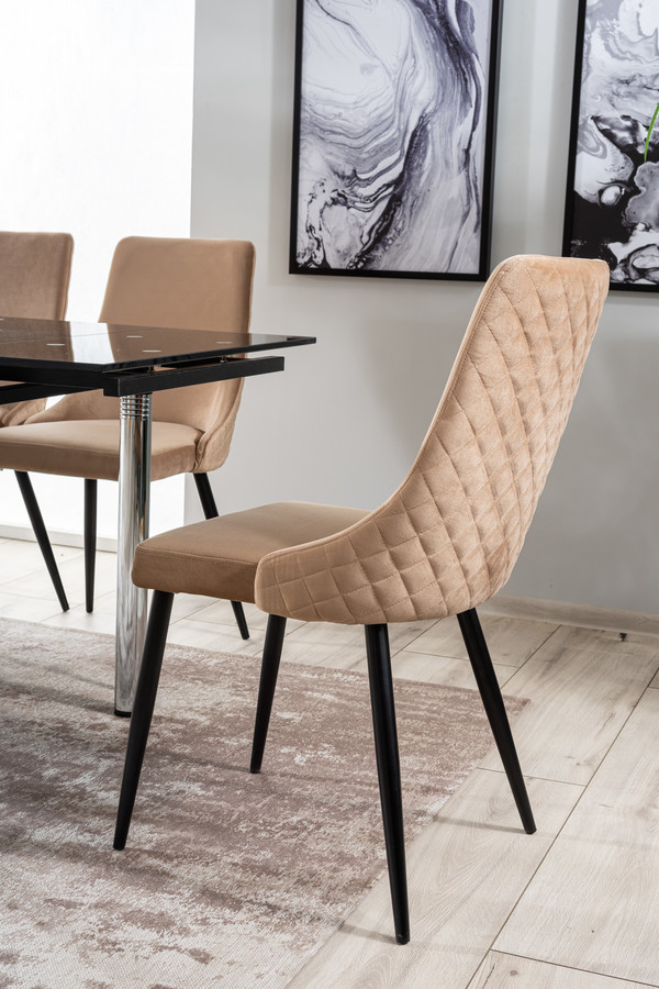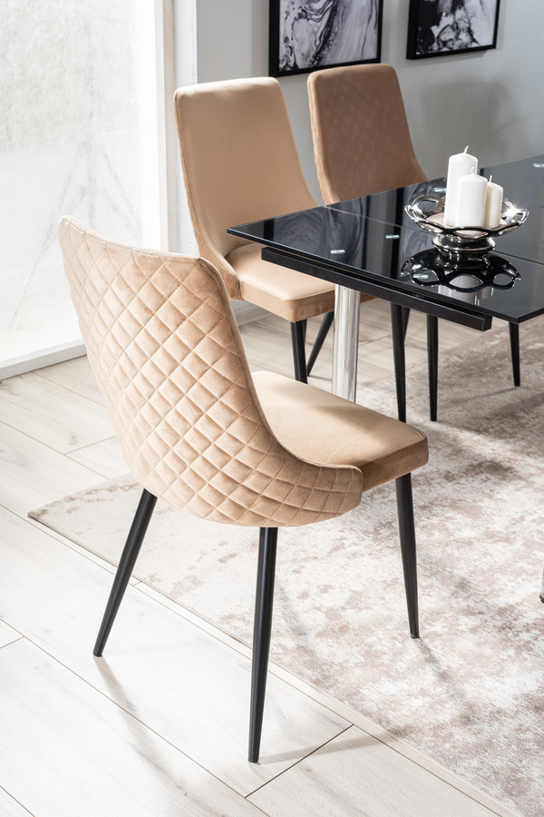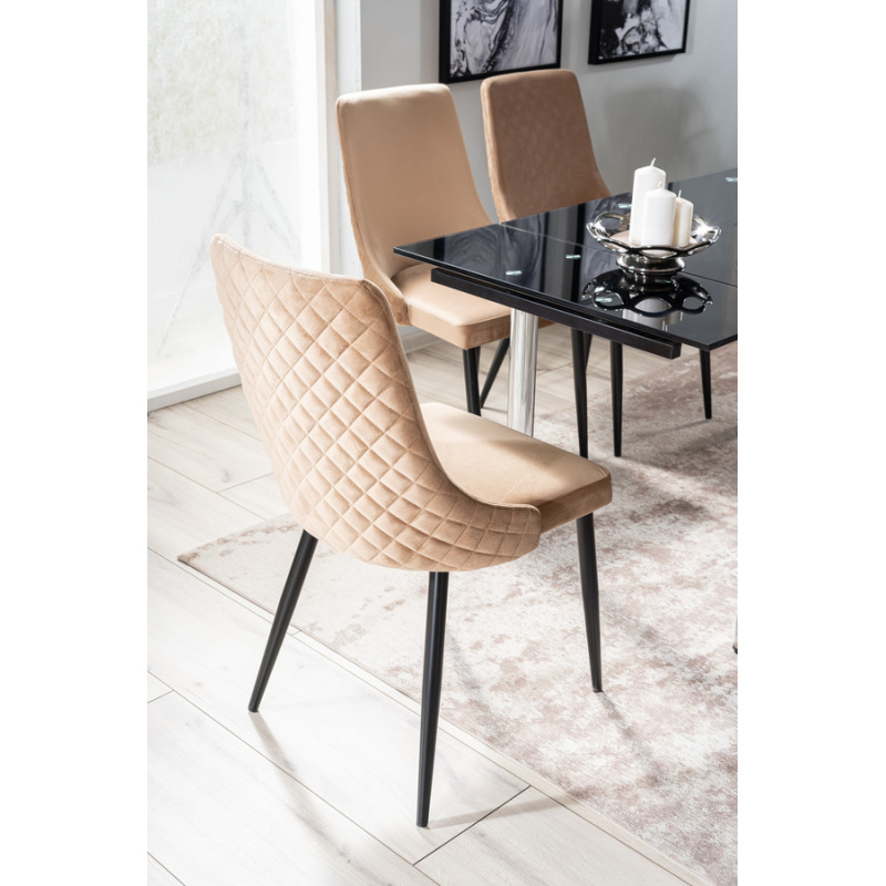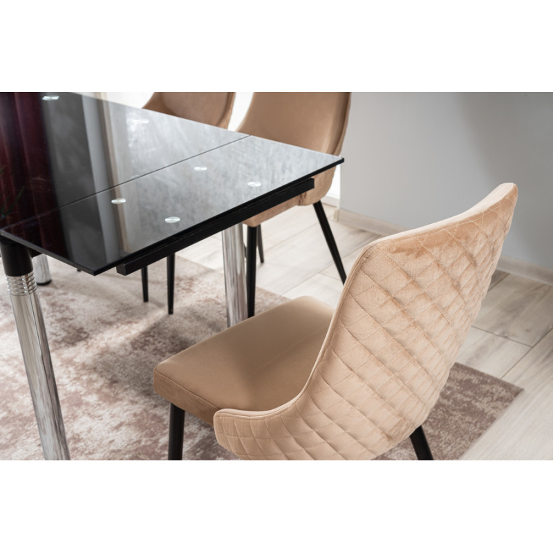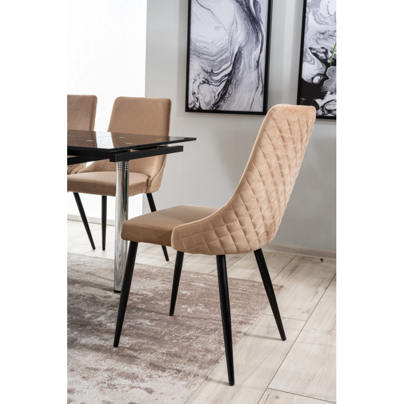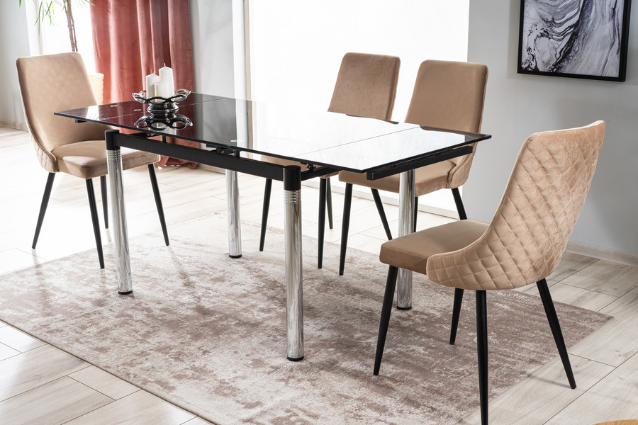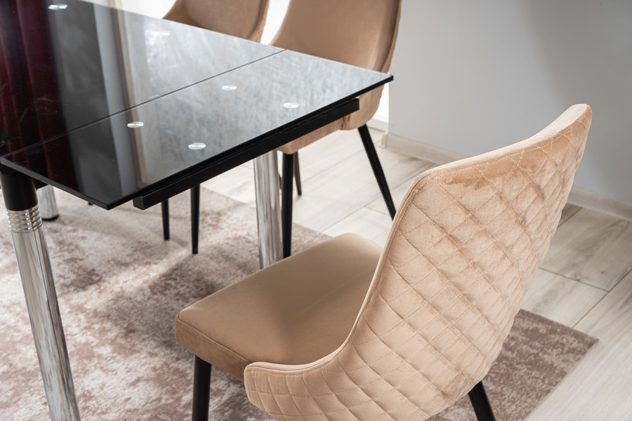 Стол – Кадифеният стол от най -новата колекция сигнали е естетическо и стилизирано парче мебели, което е идеално за съвременния интериор. Неговият стил пасва както на прост, така и елегантен интериор и подреждане в стил блясък. Столът е създаден с оглед използването на домашни салони, кухни и трапезарии. Той може да бъде и част от оборудването на хотелски, ресторанти и офис пространства. Основата на стола е направена от метал, който е боядисан в черно. Четири прави крака се отнасят от седалката, на която е поставена основната форма на мебелите. Тапицираната седалка и облегалката са свързани и допълнително профилирани, което помага да се поддържа правилното положение, което седи, докато се използва мебелите. Бежовата тапицерия е използвана в производството, което наподобява кадифе на допир. На гърба на облегалката има ефективен, ватиран модел. Мебелите се предлагат в няколко цветови варианта.