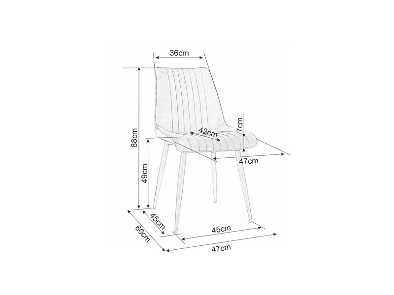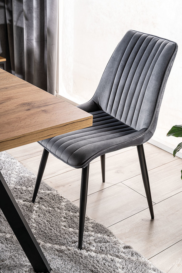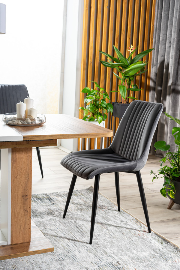 Стол – Функционалният стол е красив елемент от модерен и класически декор. Леко наклонената облегалка е адаптирана, за да поддържа най -добре гръбначния стълб по време на седнало положение. Ватирана вертикала създава впечатление за деликатни каишки, които режат тапицерията по интересен и елегантен начин.