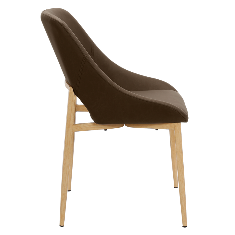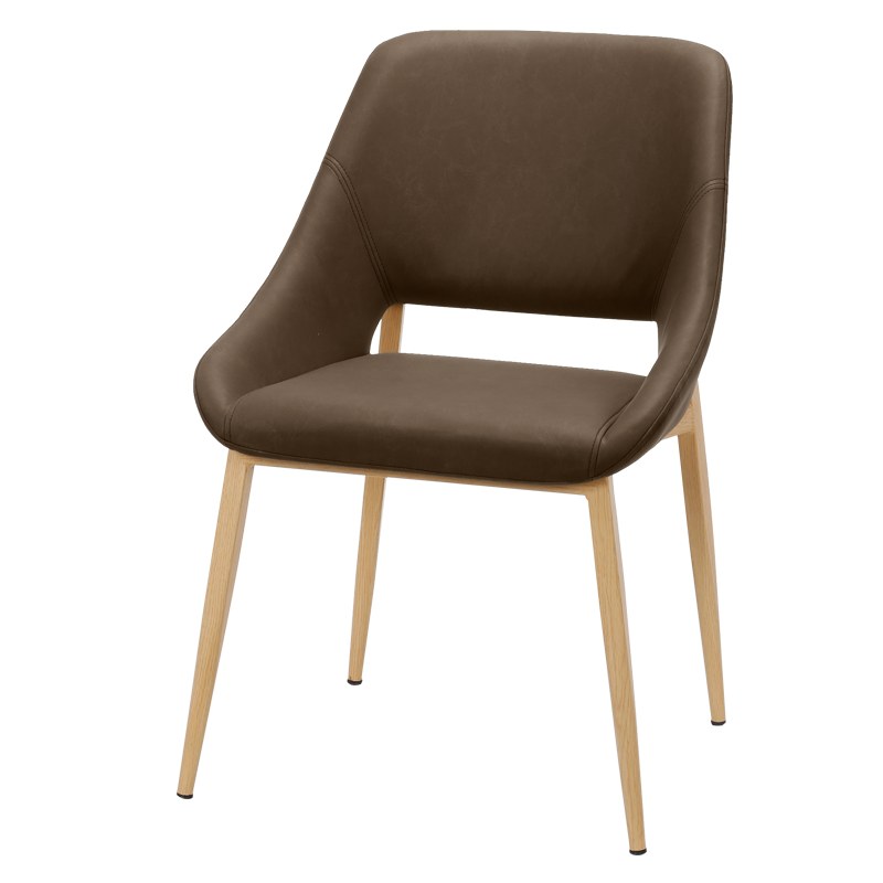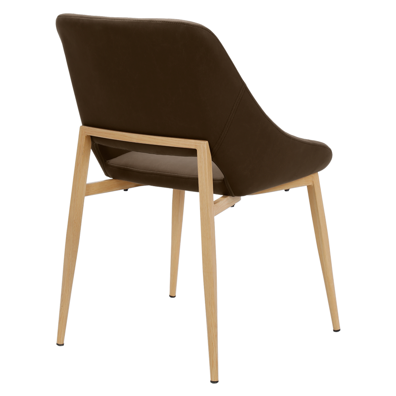 Седалката на стола е покрита с нежна на допир изкуствена кожа, която предлага максимален комфорт и лесна поддръжка. Ергономичният дизайн осигурява оптимална опора за гърба, което прави стола идеален за дълги ежедневни семейни вечери или специални събирания с приятели. Вдъхновен от скандинавския стил, краката на стола са изработени от масивна дървесина и придават стабилност и естетическа привлекателност.