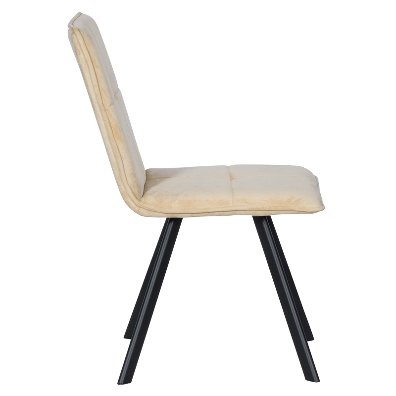 Изработен от висококачествени материали, столът предлага отлично удобство и дълготрайност. Седалката му е тапицирана с мека и гладка материя в кремав цвят, която добавя нотка на лукс и елегантност във вашия дом. Нежното капитониране придава допълнителен стил и текстура, създавайки визуален интерес и уникален характер.