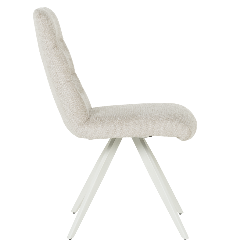 Този елегантен трапезен стол съчетава съвременен дизайн с изтънчен комфорт, идеален за всяка модерна трапезария. Изработен с внимание към детайла, столът предлага изключителна стабилност и дълготрайност. Седалката и облегалката са облечени в мек текстил, който придава усещане за уют и топлина. Цветът на тапицерията е деликатен шампанско, който лесно се съчетава с различни интериорни стилове и добавя нотка на лукс към всяко пространство.