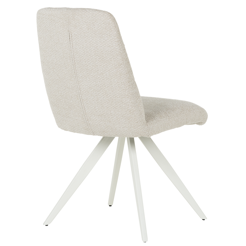 Конструкцията на стола е изработена от висококачествени материали, които гарантират здравина и устойчивост. Металните крака са с прахово покритие, което осигурява допълнителна защита и придава модерен вид. Дизайнът на краката е с интересна геометрична форма, която добавя динамика и стил към цялостния вид на стола.