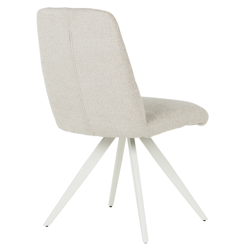 Трапезният стол притежава съвременен и изчистен дизайн, който го прави подходящ за всяко съвременно пространство. Основата на стола е изработена от праховобоядисан метал, което осигурява стабилност и дълготрайност. Горната част е покрита с дамаска от високо качество, която добавя елегантност и комфорт.