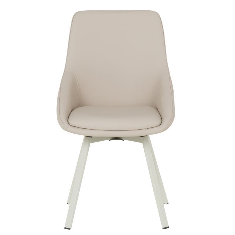 Столът е в изискан бежов цвят, който лесно се съчетава с различни интериорни стилове и цветови палитри. Нежният нюанс добавя топлина и уют в помещението, като същевременно запазва модерната си визия. Дизайнът на стола е минималистичен, с изчистени линии и елегантни форми, които подчертават неговата съвременна естетика.