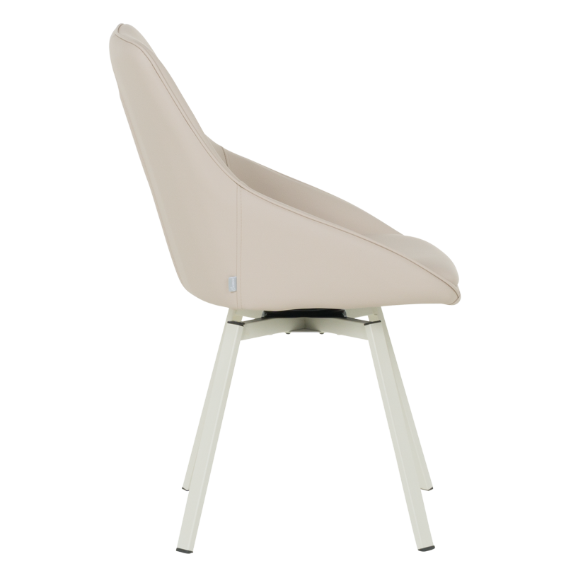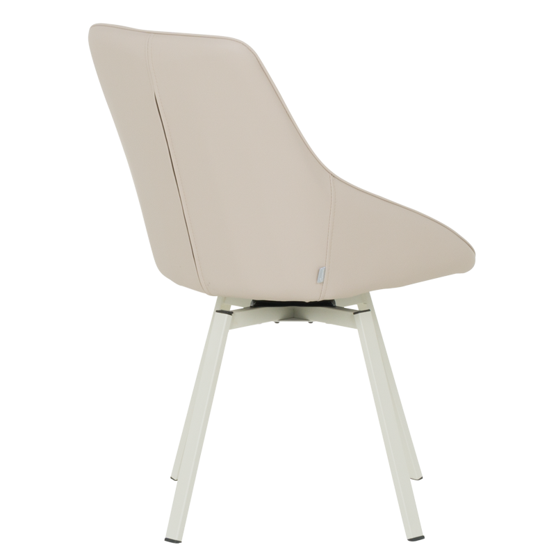 Трапезният стол впечатлява със своя стилен и изчистен дизайн, който е съчетан с практична функция за въртене. Изработен е от висококачествена силиконова кожа, която придава луксозно усещане и е изключително здрава, осигурявайки лесна поддръжка.