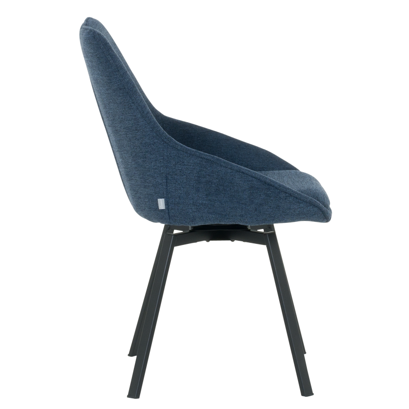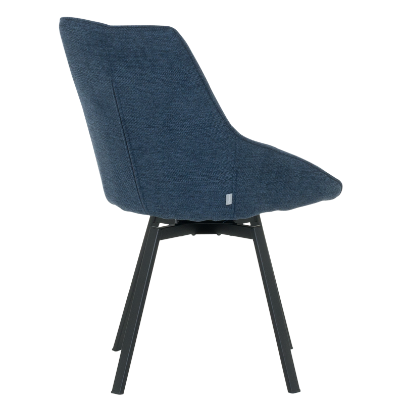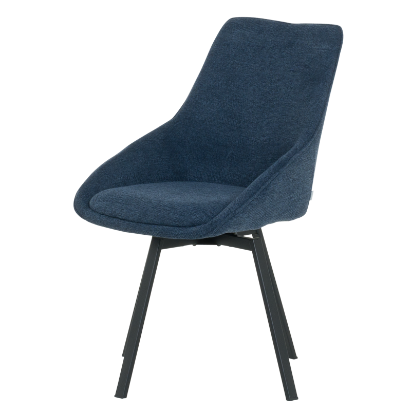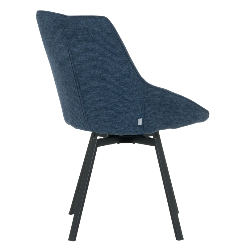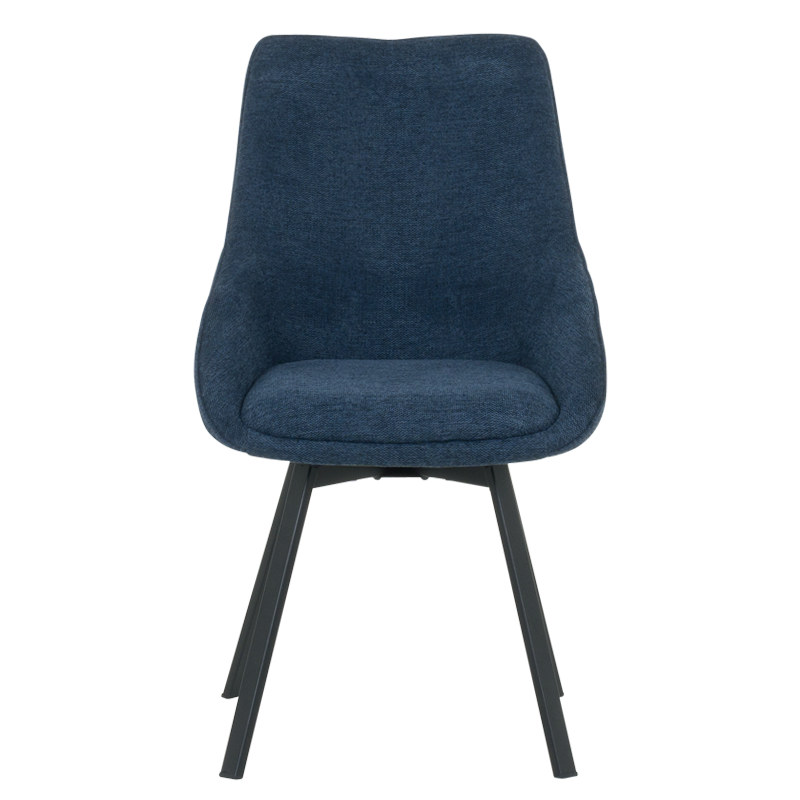 Дълбокият син цвят на тапицерията придава изисканост и лесно се съчетава с различни интериорни решения. Металните крака са с прахово покритие, което добавя допълнителна здравина и устойчивост на износване. Техният изчистен и минималистичен дизайн допълва цялостната визия на стола, като същевременно осигурява стабилност и баланс.