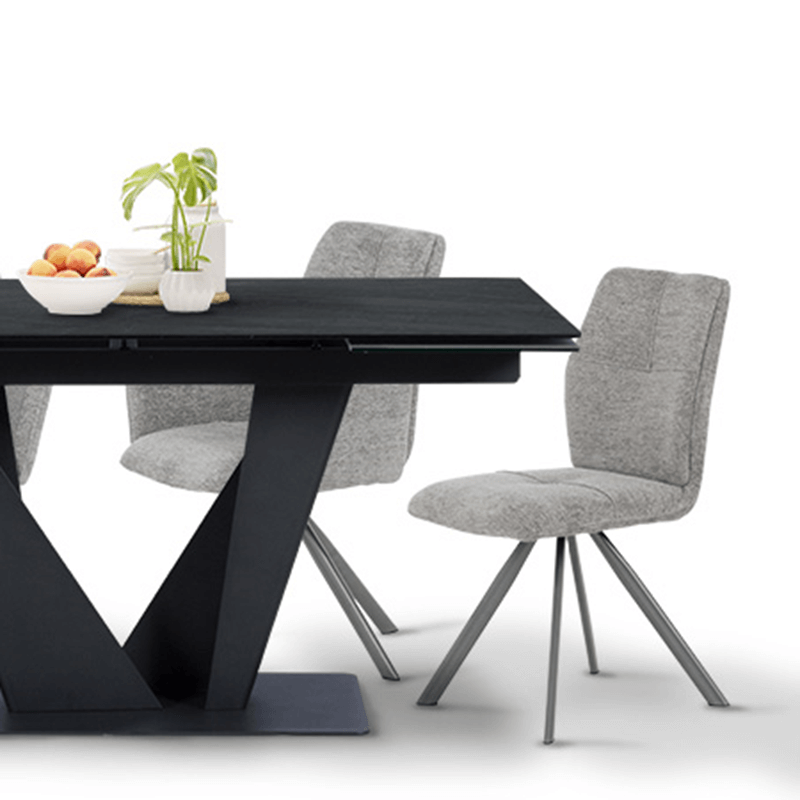 Този елегантен стол съчетава модерен дизайн с комфорт и функционалност, идеален за всяка съвременна трапезария. Изработен с внимание към детайла, той предлага изключителна стабилност и дълготрайност. Седалката и облегалката са облечени в мек текстил, който осигурява удобство и стил. Тапицерията е в изискан сив цвят, който лесно се съчетава с различни интериорни решения, добавяйки нотка на елегантност и изтънченост.