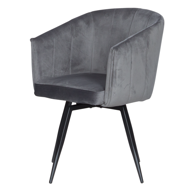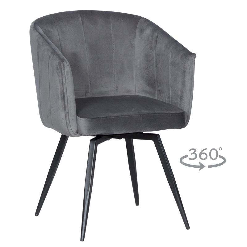 Трапезният стол е подходящ за обзавеждането на дома или за интериора на модерни заведения. Седалката му е изработена от устойчива и лесна за поддръжка дамаска, а основата от праховобоядисан метал, което осигурява здравина и естетичен вид. За максимален комфорт столът разполага с функция за завъртане на градуса.