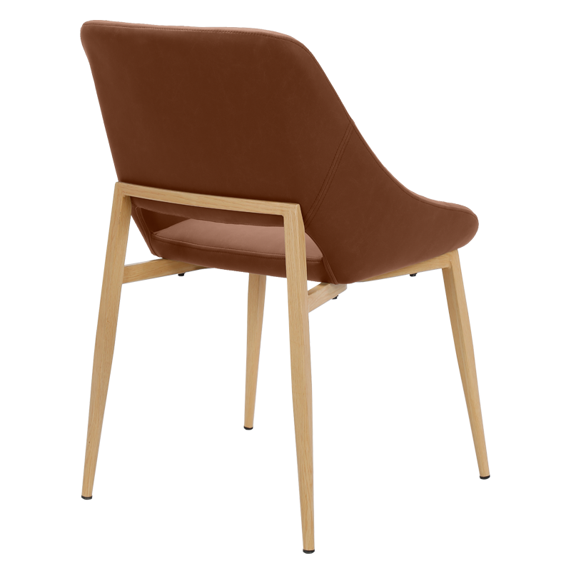 Трапезният стол е модел с модерен дизайн, който ще внесе стил и уют в интериора. Той е изработен от висококачествена дамаска, която придава на седалката мекота и комфорт. Краката му са метални, но наподобяват дърво, което добавя елегантност и устойчивост на стола.