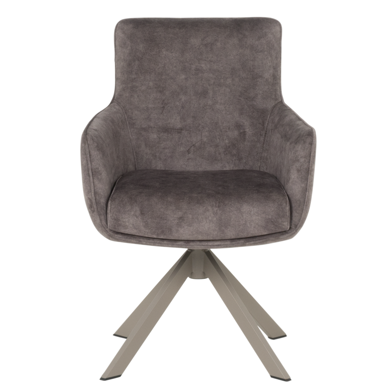 Кадифеният цвят, в тъмно бежов нюанс, създава усещане за топлота и лукс, който ще се впише безупречно във всяка интериорна концепция. Седалката и облегалката са внимателно проектирани, за да осигурят максимален комфорт дори при продължително седене. Меките извивки и ергономична форма гарантират комфортно поставяне на тялото и поддържат правилната стойка.