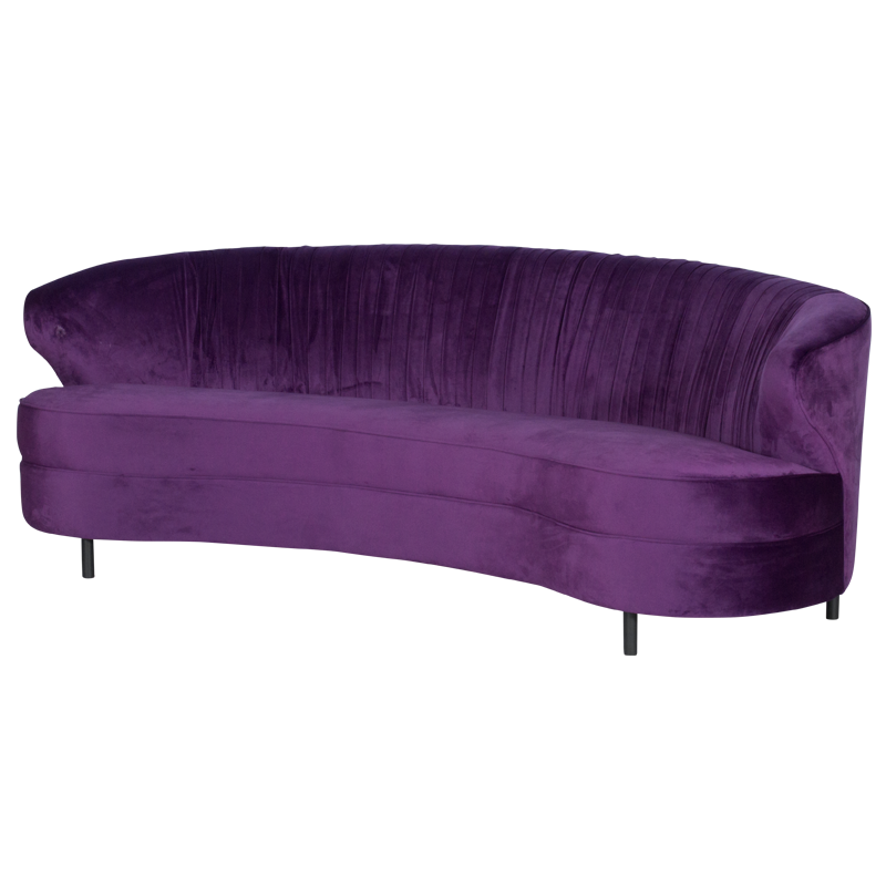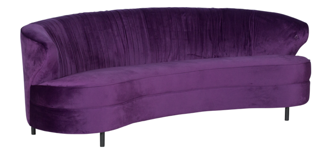 Изработено от висококачествени материали, то съчетава в себе си издръжливост и комфорт, които ще удовлетворят дори най-взискателните вкусове. Лилавият велурен плат допринася за мекотата и допира до кожата, създавайки усещане за лукс и изящество. Гладките линии и изчистеният дизайн правят това канапе идеално допълнение към всяко модерно или класическо интериорно решение.