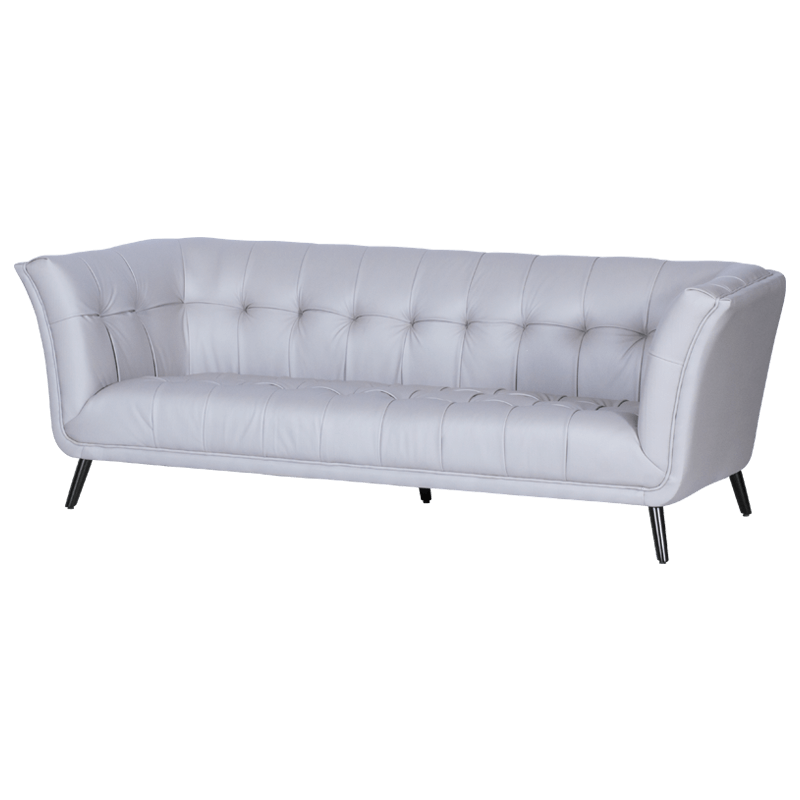 Седалката е оборудвана с дебела подплата и ергономичен дизайн, който осигурява отлична поддръжка на гърба и оптимален комфорт при продължително седене. Високите облегалки и меките подлакътници също допринасят за несравнимото усещане за удобство и релакс. Металните крачета добавят допълнителна стабилност и придават на канапето модерен и изчистен вид.