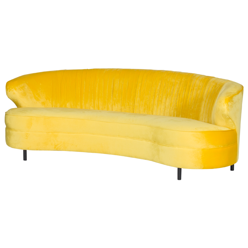 Жълтият цвят създава ведро и приветливо настроение, което ще освежи всяко пространство. Идеално е за допълнение към хола, където може да служи като акцентно обзавеждане, привличайки вниманието и допълвайки интериора с изтънченост и топлина. Канапето предоставя достатъчно пространство за сядане на трима души, което го прави подходящо за семейни събирания и социални мероприятия.