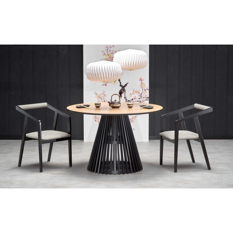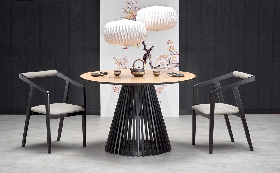 Стол – Модерният и дизайнерски стол е уникален мебел, който ще се хареса на любителите на оригиналните интериорни аксесоари. Благодарение на ефективния блок, той ще се превърне в практическа декорация на стилна кухня или трапезария. Представеният стол е изработен от плътна букова дървесина, допълнена с велурна тъкан. Различителният модел на азул е тесен гръб, състоящ се от един напречен лъч. Те бяха свързани с подлакътници, подредени под ъгъл по отношение на седалката, преминавайки в двата предни крака на стола. Свързването на подлакътниците с краката е изгладено и закръглено. Квадратна седалка и облегалка са покрити с кадифена тъкан. Моделът се поддържа на четири дълги крака, подредени наклонено във връзка със земята. Целият блок изглежда е леко наклонен напред, като дава на стола интересен визуален ефект. Представеното парче мебели ще се хареса на всички потребители, които ценят комбинацията от модерност и минимализъм. Стола е предназначен за самосглобяване.
