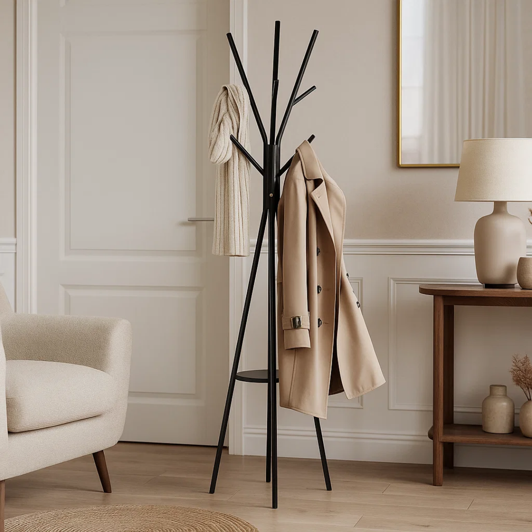 С удобна основа, която предлага допълнително пространство за съхранение, той е идеален за закачалки на връхни дрехи, шапки, чанти и други аксесоари. Така не само спестявате пространство, но и поддържате ред.